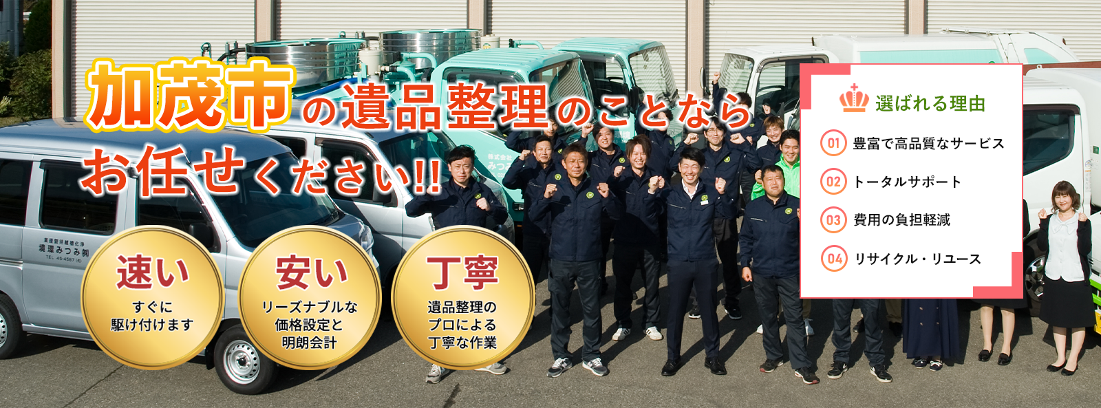 私たちは遺品整理のプロとして質の高いサービスにこだわり続けます。